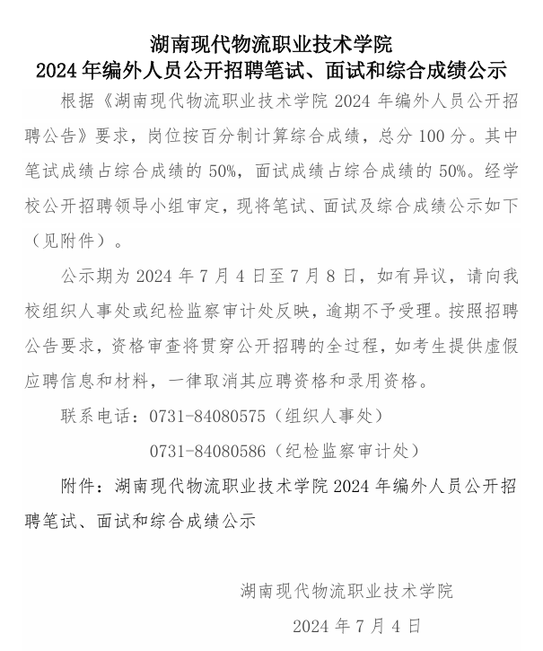 下一条:湖南现代物流职业技术学院2024年编外人员公开招聘面试入围人员名单公布
