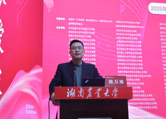 长沙理工大学马克思主义学院党委书记、二级教授陈万球在点评中对胡艺华院长的音乐思政课给予了高度评价,他指出:“思政+三农+艺术”的创新教学模式在全国为首创,本次活动体现了大主题、大协同、大创新的鲜明特点,将说理、叙事和互动有机融合在一起,极大地增强了思政课的亲和力、吸引力和感染力,真正做到了匠心独运、守正创新。