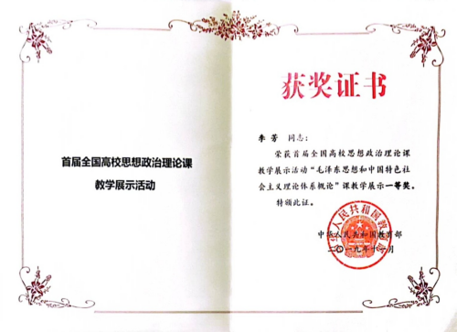 “上好思政课、做一名学生喜欢的思政课教师是我毕生的追求,铸魂育人、立德树人,给学生心灵埋下真善美的种子,引导学生扣好人生第一粒扣子,则是我永远坚守的初心和使命。”李芳如是说。